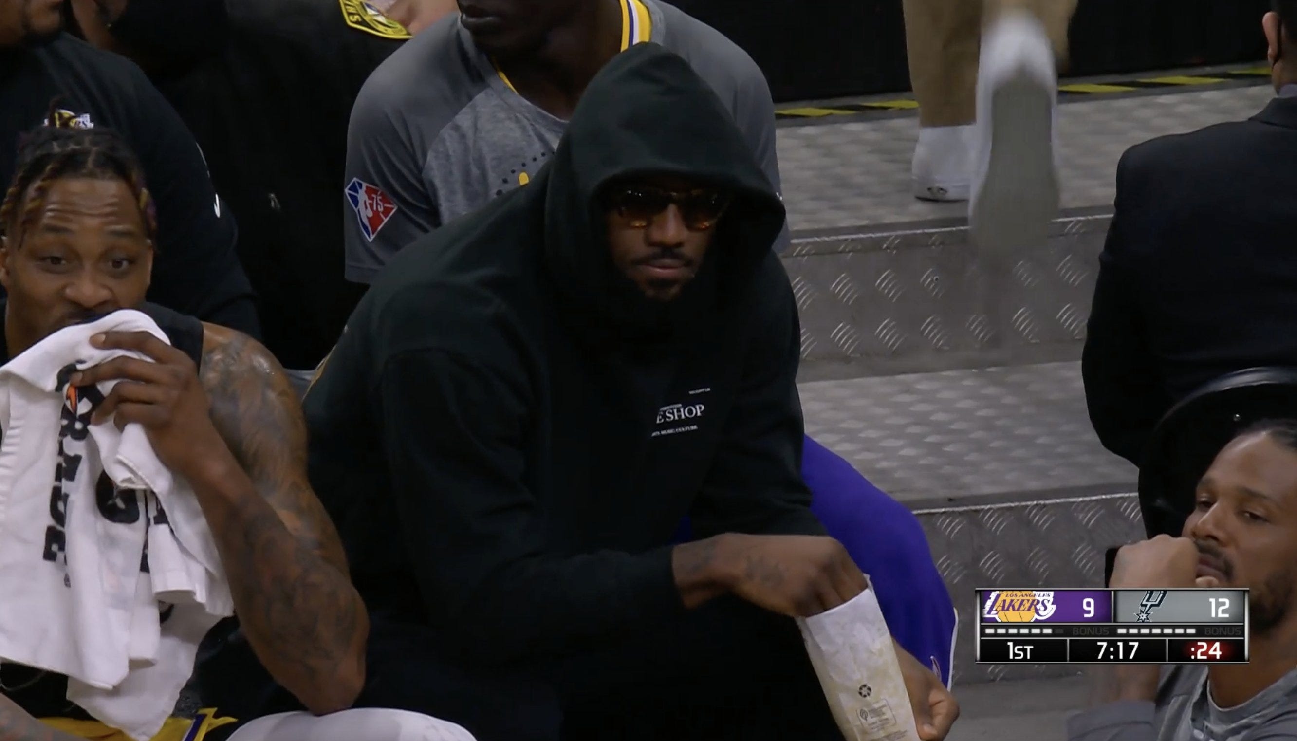 LeBron James, jogador dos Los Angeles Lakers, assistiu ao jogo da sua equipa, e a mais uma derrota, frente aos San Antonio Spurs, no AT&T Center, enquanto mandava umas pipocas ao bucho. Falámos com ele, porque importava saber se eram doces ou salgadas.