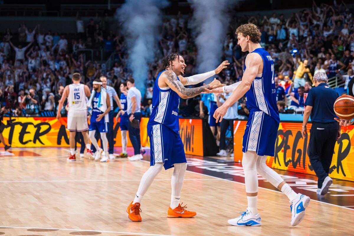Surpresa em Riga: a Finlândia derrotou a Sérvia por 92-86 e garantiu um lugar nos quartos-de-final do EuroBasket, repetindo a presença no top-8 pela segunda edição consecutiva. Lauri Markkanen liderou com 26 pontos e 7 ressaltos, mas foi Elias Valtonen o herói nos minutos finais, com 8 pontos decisivos nos últimos dois minutos. Do lado sérvio, Nikola Jokić (30 PTS, 8 REB) e Nikola Jović (20 PTS) não evitaram a eliminação. É o segundo EuroBasket seguido em que a Sérvia fica fora dos “quartos”.🇱🇹 Lituânia vence o dérbi do Báltico