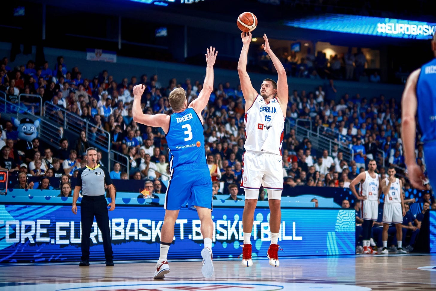 A Sérvia não deu hipótese à Estónia na estreia em Riga e venceu por 98-64, numa partida em que chegou a ameaçar o recorde absoluto de assistências no EuroBasket. A equipa de Svetislav Pešić distribuiu 32 passes para cesto, ficando a um da marca estabelecida em 2001… curiosamente também frente aos estónios. Nikola Jokić foi a atração principal, mas nem precisou de acelerar: 11 pontos, 10 ressaltos e 7 assistências em ritmo de treino. O destaque acabou por ir para Nikola Jović, autor de 18 pontos e 6 assistências em apenas 16 minutos. Do outro lado, a Estónia acusou demasiado a ausência de Maik-Kalev Kotsar e só contou com 11 pontos de Henri Drell.