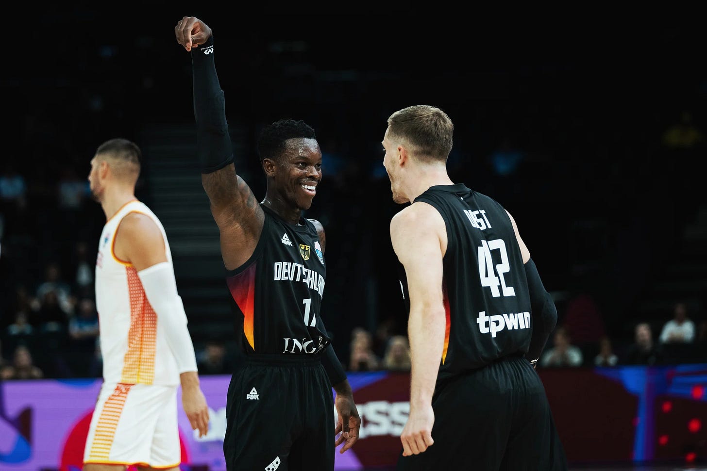 Dennis Schröder, Franz Wagner e Andreas Obst combinaram 61 pontos e lançaram a Alemanha para um triunfo por 106-76 frente ao Montenegro em Tampere. Depois de uma primeira parte equilibrada, os campeões do mundo aceleraram no regresso dos balneários com um parcial de 33-12 no 3.º quarto que matou o jogo. Schröder terminou com 21 pontos, Wagner brilhou com 22+8 ressaltos e Obst incendiou a partida com 18 pontos e 5/6 de três pontos. A Alemanha soma a primeira vitória no Grupo B e prepara agora o duelo com a Suécia. Montenegro teve em Nikola Vučević (23-10-5) a sua melhor figura, mas pagou caro a quebra defensiva após o intervalo.🇫🇮 Markkanen lidera Finlândia em duelo nórdico