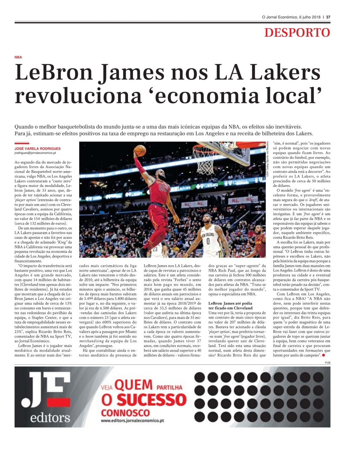 Qual é o impacto económico da ida de LeBron James para os Los Angeles Lakers? Esse é o tema do artigo de José Varela Rodrigues na mais recente edição do Jornal Económico, que conta com a nossa colaboração.