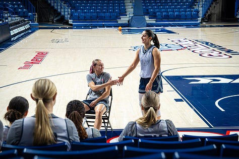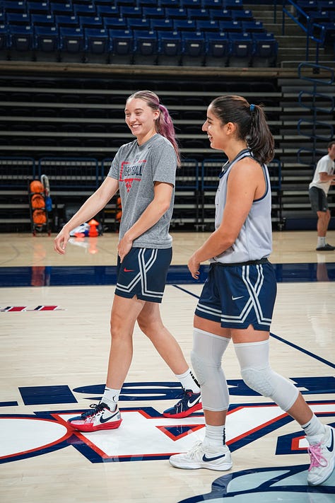 Paige Bueckers visitou um treino e assistiu a um jogo da equipa da universidade de Gonzaga, para apoiar a base portuguesa Inês Bettencourt, antiga colega da Rookie do Ano da WNBA em UConn.