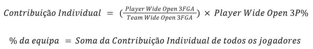 A maneira mais fácil de nivelar a habilidade de um jogador de afetar a geometria do campo e a facilidade de concretização de um triplo é usar a percentagem de um jogador em lançamentos de três pontos no qual se encontra sem oposição. Ben Taylor, do excelente projeto Thinking Basketball, tipicamente fala da percentagem de wide open 3s para classificar alguém como “um bom lançador”. Por isso, neste exercício, vou simplesmente olhar para percentagens em lançamentos classificados como wide open pela NBA. Este tipo de informação só está catalogada até à época de 2013-14, a época que marca o início da chamada tracking era.