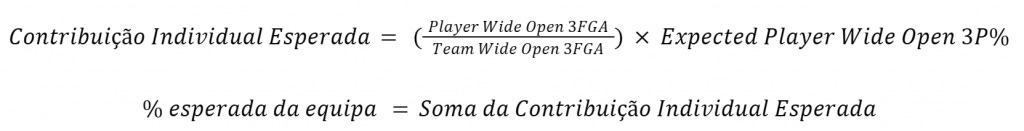 Passando este passo, não podemos simplesmente fazer uma média da expectativa para os vários jogadores dentro da equipa porque isso não considera que jogadores estão efetivamente a “consumir” as tentativas de lançamento. Afinal, o Cody Zeller ter uma percentagem prevista de 25% ou de 75% é irrelevante quando ele faz duas tentativas na época inteira.