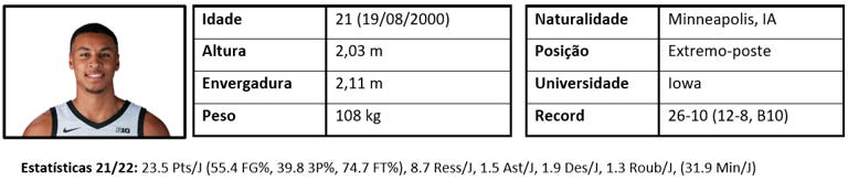 Um dos finalistas para o Naismith Player of the Year, Keegan Murray teve um percurso meteórico e assumiu-se como uma potencial escolha no top-5. Estando em ligeiro desacordo com esta linha de pensamento, farei o meu melhor para fazer justiça à qualidade do jogador.