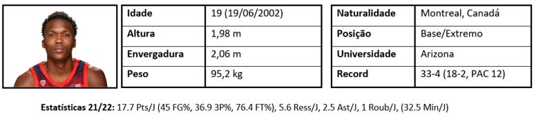 Terminamos esta tríade de talento com Ben Mathurin, o sophomore de Arizona, que depois de ter namorado o Draft do ano passado, onde era visto com uma potencial escolha de top-20, apostou em voltar para Tucson e elevou o seu stock, com uma belíssima 2.ª temporada.