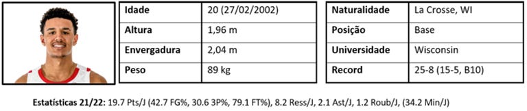 Passamos de um finalista do Naismith Player of the Year para outro, Johnny Davis, o extraordinário base de Wisconsin, que, depois de uma temporada de freshman longe das luzes, aparece como mais um nome forte da lottery.
