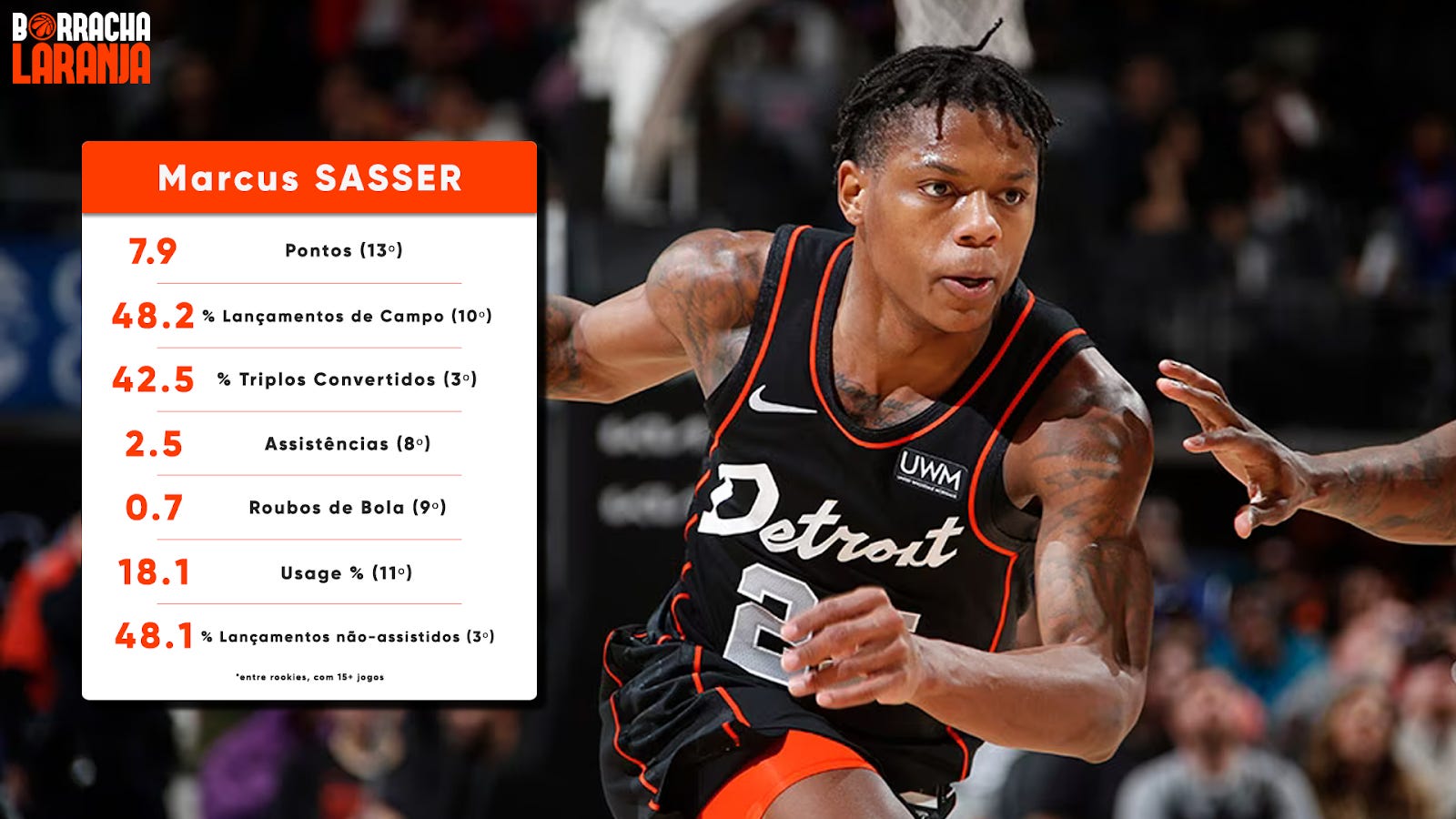 Marcus Sasser é o 8.º rookie com mais assistências, apesar de ser talvez a 4.ª escolha da equipa para ter bola. Com a facilidade que tem para chegar ao pintado, atrai defesas e solta facilmente para encontrar atiradores. Tem boa visão de jogo e sabe colocar a bola no sítio certo e no momento certo, começando cada vez mais a ter atenção redobrada por parte das defesas contrárias.