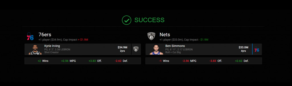 Construir uma troca em torno de um jogador com este contexto, salário alto (33 003 936 dólares em 2020/21) e skill set particular, apesar de apetecível, é no mínimo… desafiante. Uma troca só se faz se fizer sentido para ambas as partes. Muitas vezes, os adeptos querem trocar o seu lixo pelo ouro alheio. A vida real funciona de maneira diferente. As trocas que vemos concretizadas são conversadas e negociadas muitas vezes durante meses a fio e são muito menos do que os potenciais negócios que caem por terra.