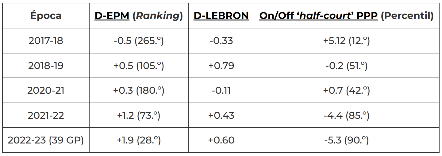 Ou pode perfeitamente abrir espaço a uma das outras estrelas fora da bola. E sendo ele próprio uma ameaça – umas boas ordens de magnitude acima do Landale nesse aspeto – não se pode deixar um defensor em drop ou focar apenas em impedir o lançamento do outro lado: